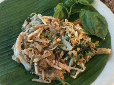 Lumpia Basah (bean sprouts, a type of pumpkin, egg or tofu and spices, served in a wafer thin rice flour pancake)