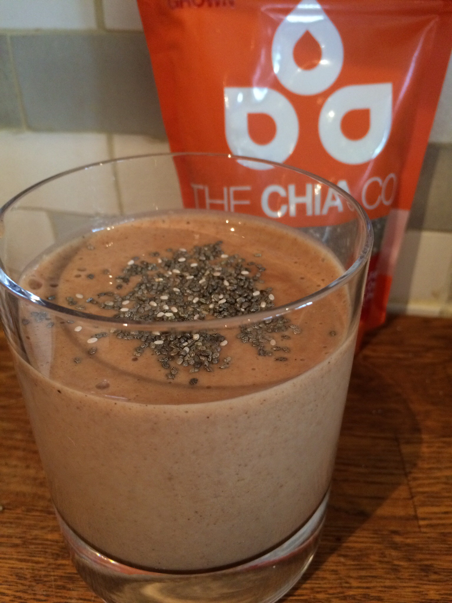 I also sprinkled them in my granola, used them in my quinoa porridge (recipe here) and added them to my smoothie. The smoothie was based on this recipe here from Colette’s Fitness Kitchen – 2 large bananas, 1 tbsp cashew butter, 2 cups soya milk, 2 scoops of Pure Form Vanilla Protein Powder, 1tbsp chia seeds, 1 tsp each of cinnamon, raw cacao and coffee and a cup of ice – blitzed together! Yum! 🙂