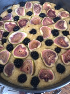 Gently spoon or pipe the filling over the top and smooth it down. Press in the whole blackberries, and sprinkle with a little sugar and flakes almonds.