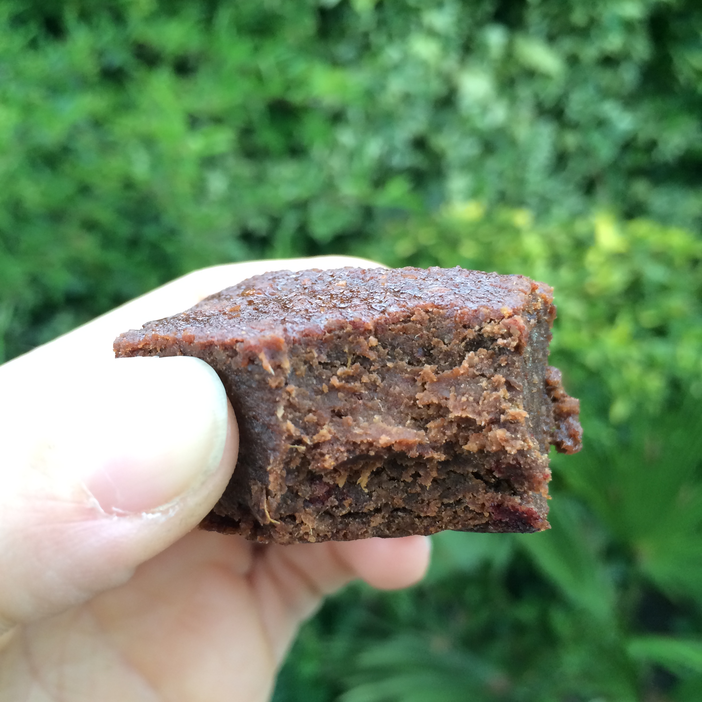 Pop this in the freezer and then start on the caramel layer. I find it easier if you chop the dates up a bit first, so chop them and pop in to the processor together with the other ingredients, but not the water. Pulse until blended in to a paste. If it’s a little too dry then add some water (carefully so you don’t add to much). Once you have the consistency you want (sticky but spreadable) then take the base out the freezer and spread the caramel on top. You may have some caramel left over – this is no bad thing, I rolled it into balls which I coated in chocolate for some extra little caramel bites! 🙂