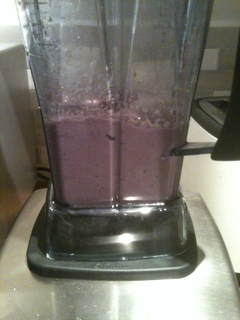 You can change things around with this – use different nut butters if you like, add other bits and bobs eg frozen berries, guarana, chilli powder, chia seeds etc but this is my favourite base.