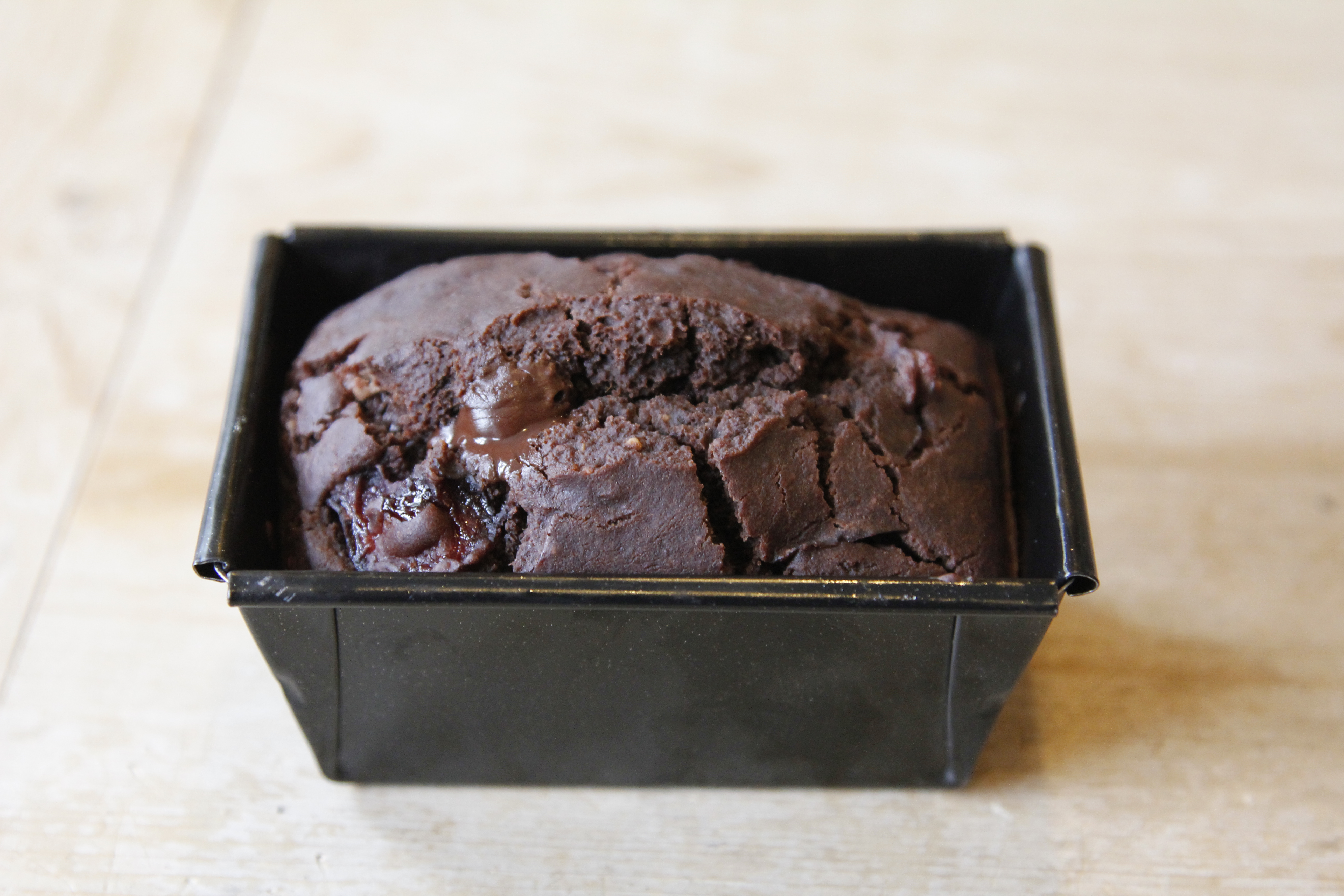 Put the apple, almond butter, milk and cocoa powder in a mixing bowl. Add 1/3 cup boiling water and mix quickly with a fork to make a thick chocolate sauce. Add the sugar and extracts and mix well. Sieve half the flour, bicarbonate soda and salt into the mix and mix gently. Add 1 tbsp boiling water and mix again. Add the rest of the flour mixture and another tbsp boiling water and stir until smooth. Go gently – don’t over mix. Add the chilli flakes and adjust to taste – if you want it with a bit more of a hit add more! Finally add the chocolate chunks and cherries and fold in to the mixture.