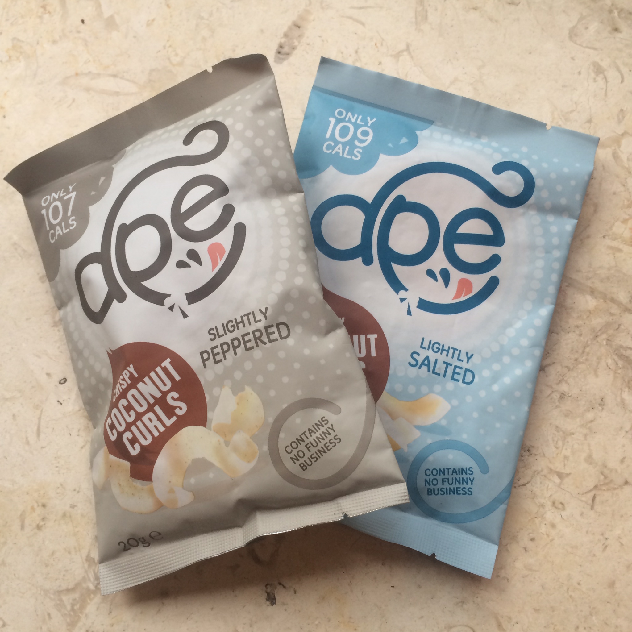 Well these kinda won me over right from the off – the anthropologist and monkey Dr in me was naturally drawn straight to any snack called Ape Crispy Coconut Curls and thrilled to be sent some to try. They’re made by a small london based company which also ticks lots of boxes for me as I’m always keen to support small businesses.
