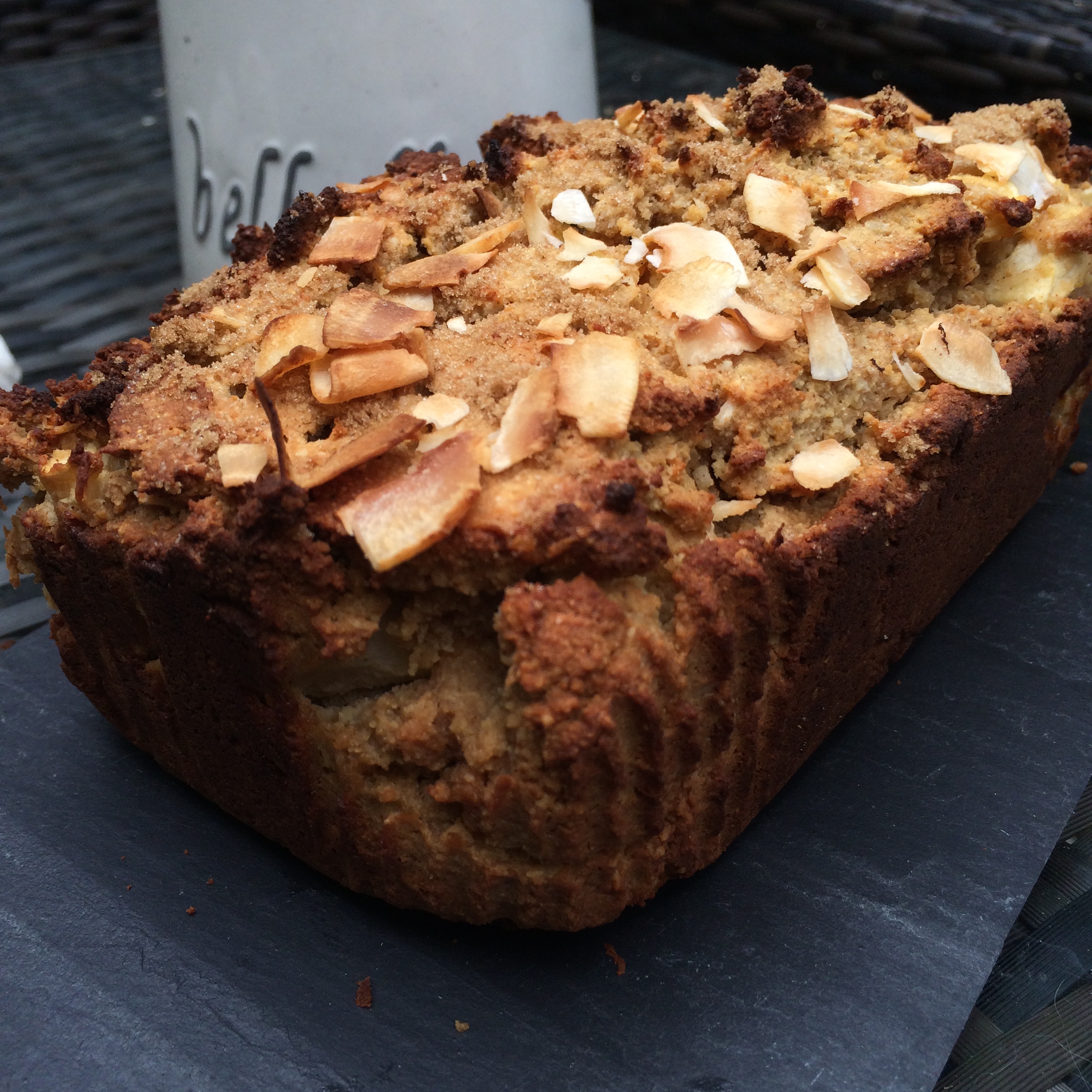 Spoon the batter in to your tin, sprinkle a little coconut sugar and coconut flakes over the top for decoration if you fancy, and pop in the oven. If like me you have too much batter then make some small cakes too! Depending on the size of your tin it will take 25 – 40 mins to cook but just keep checking it and when a skewer comes out clean it’s done! As it cooks you may find the top starts to brown too much so just pop some foil over it if so.